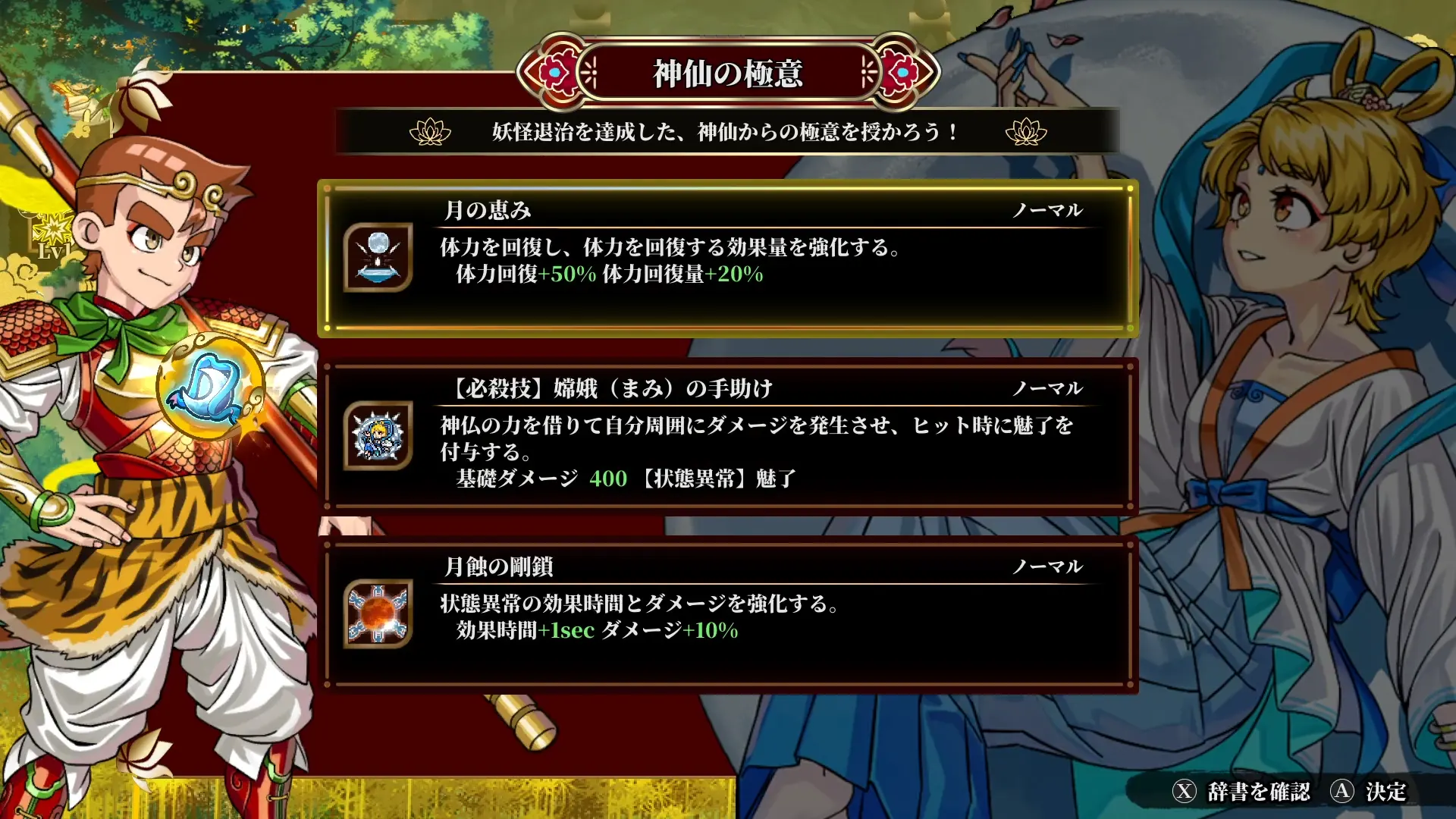 プレイ中に獲得した徳や銭を使って、ステータスを自由に強化できる「強化スキル」システムを搭載。